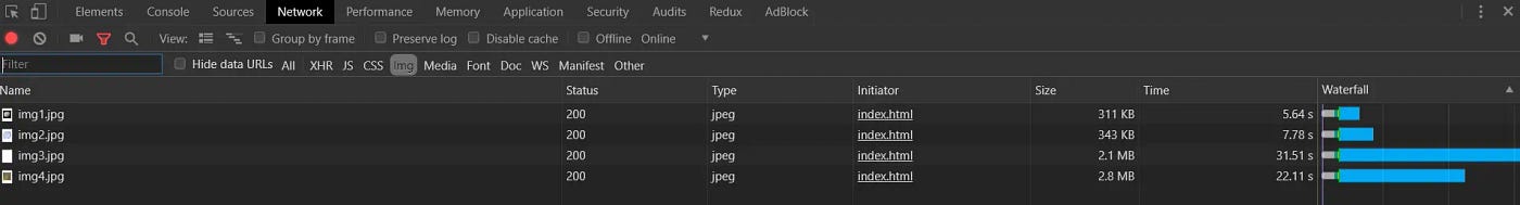 이미지를 숨기는 목적은 달성되었지만, 숨겨진 이미지에 대한 브라우저의 요청은 전송되었으며 이는 사이트의 로드성능에 직접적으로 부정적인 영향을 미쳤습니다.